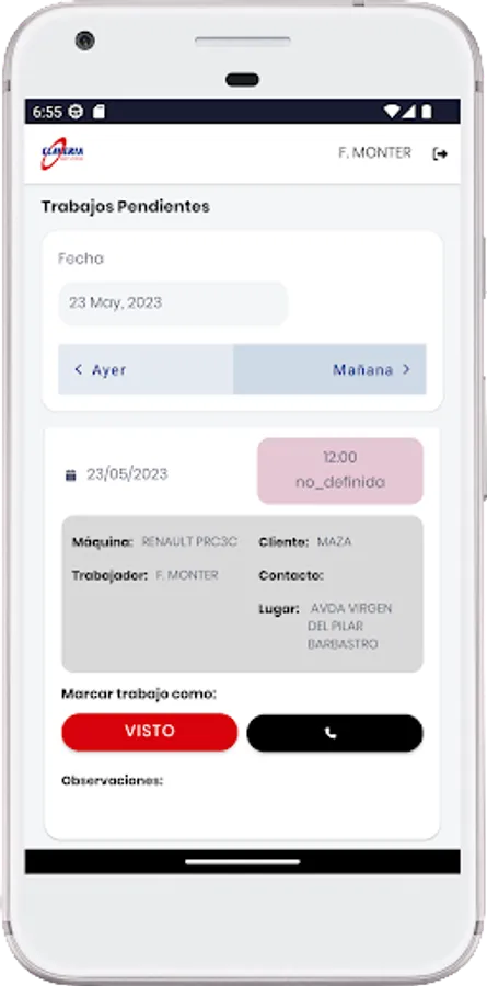 With the Chauffeurs application, users can control and be aware of new tasks, jobs and changes in their jobs related to Clavería Servicios.