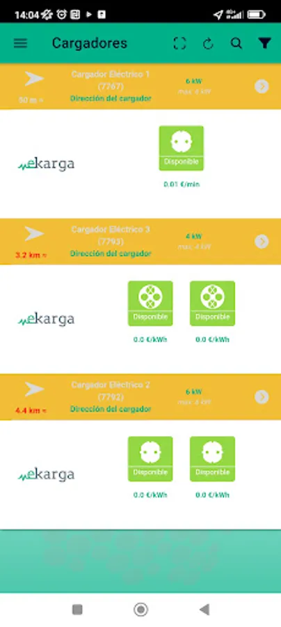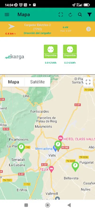 eKarga shows the location, information and status of the different chargers, allows the customer to activate them and start a charge, graphically showing the process in real time.