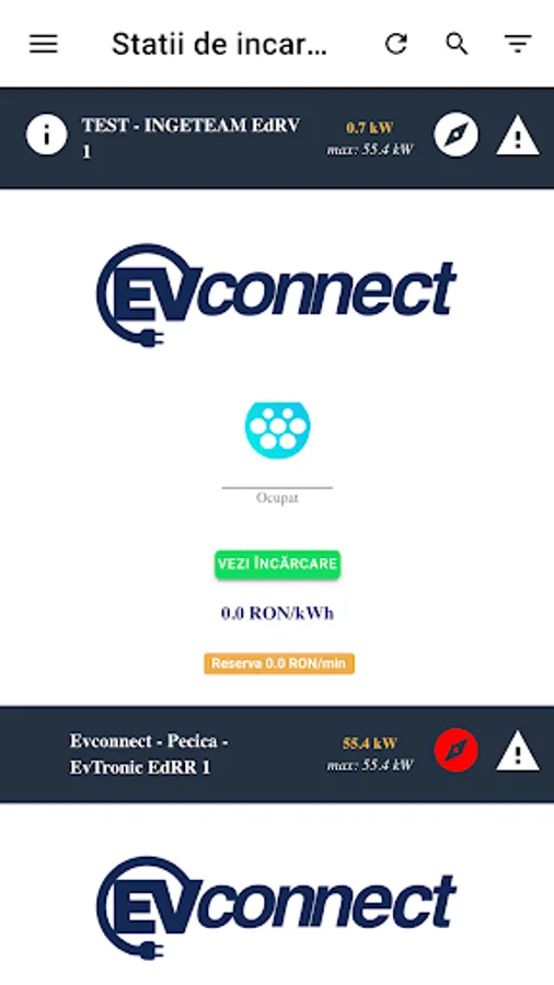 EV Connect shows the location, information and status of the different chargers, allows the customer to activate them and start a charge, graphically showing the process in real time.