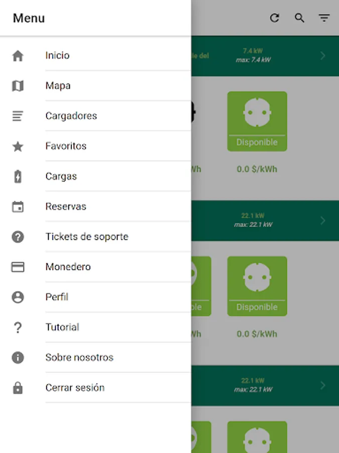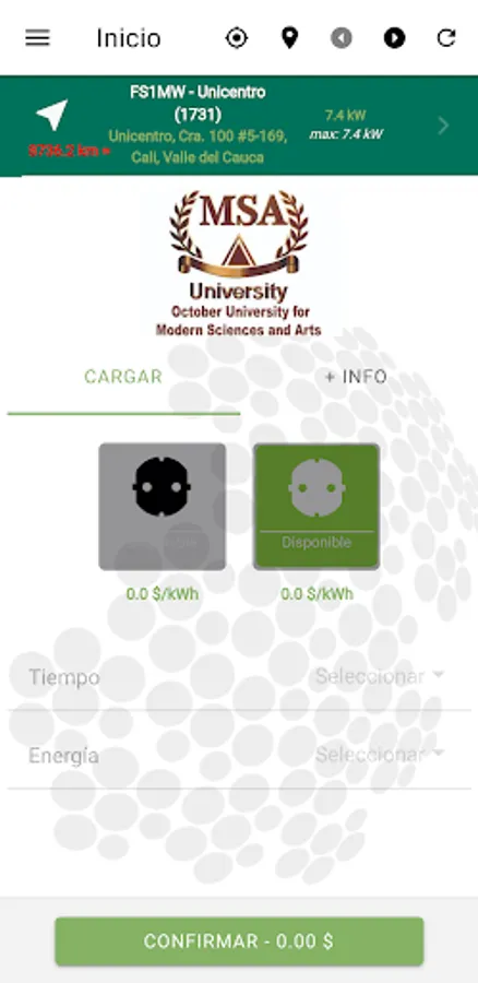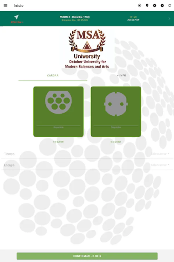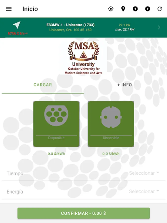 Link2Green shows the location, information and status of the different chargers, allowing the customer to activate them and start a charge, graphically showing the process in real time.