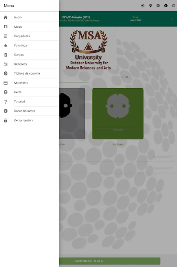 - The user can select the plug of a charger in which the charge will start, where the steps to follow to start it are shown.