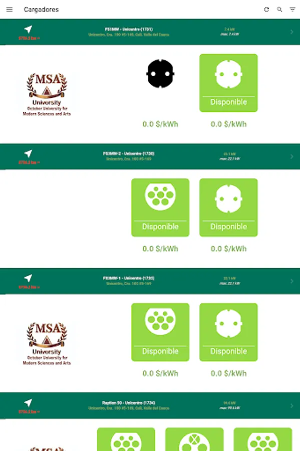 - List of chargers: the detailed information of each charger is displayed.