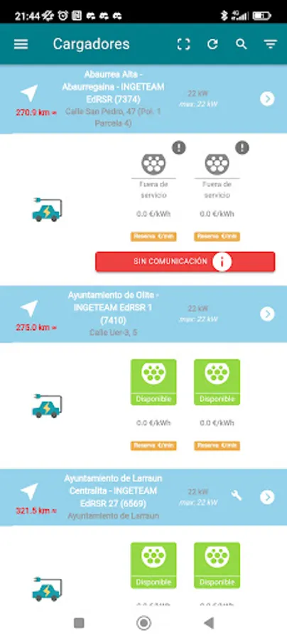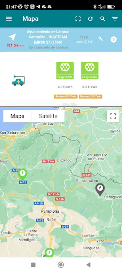 Navarra recharges you shows the location, information and status of the different chargers, allows the customer to activate them and start a charge, graphically showing the process in real time.