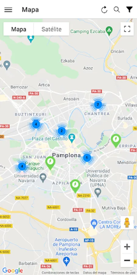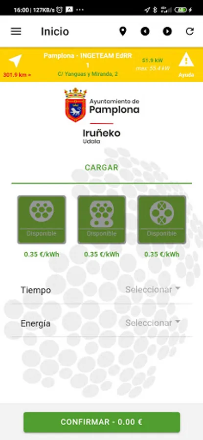 Pamplona EVCharge shows the location, information and status of the different chargers, allows the customer to activate them and start a charge, graphically showing the process in real time.