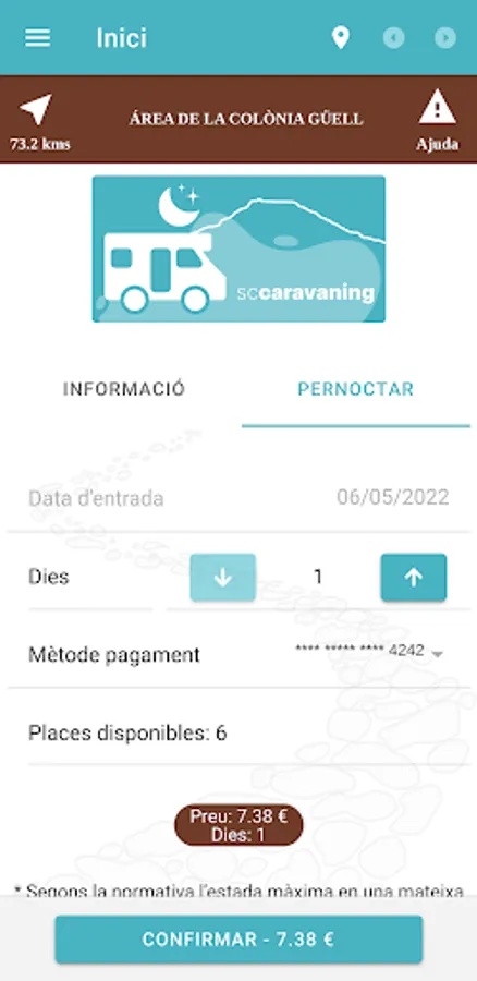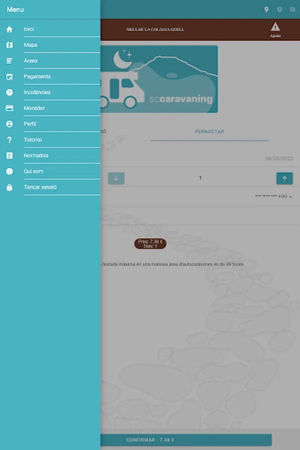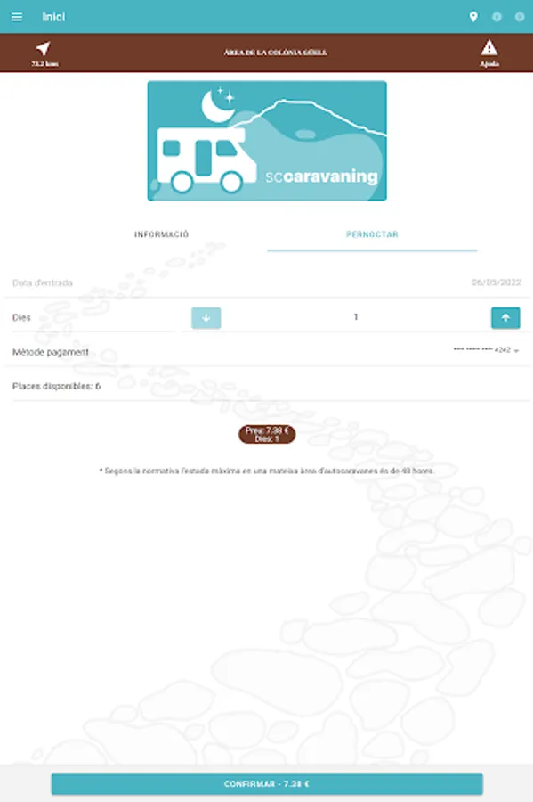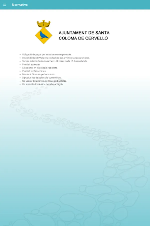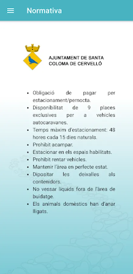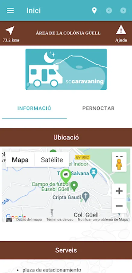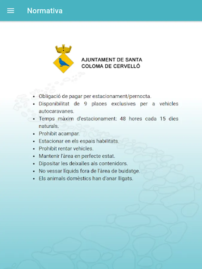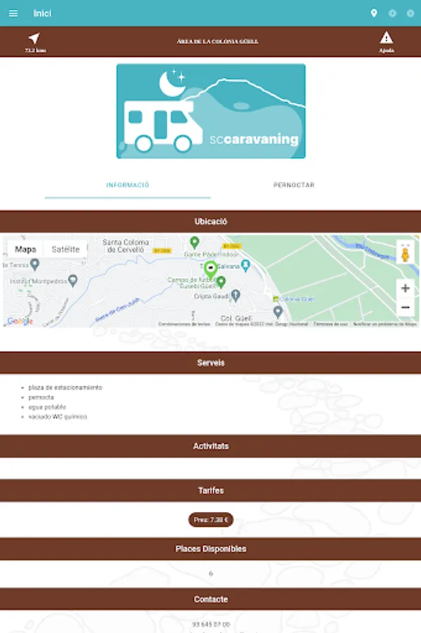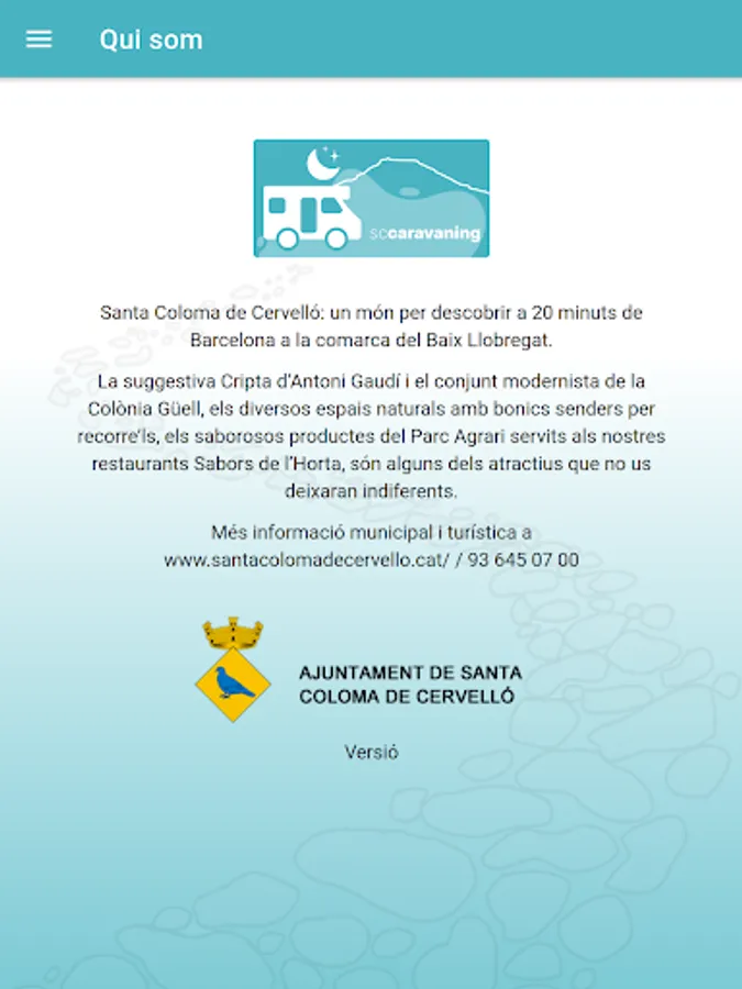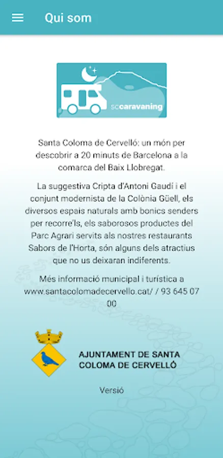 Application to obtain information and pay for caravan areas in the Santa Coloma de Cervelló area.