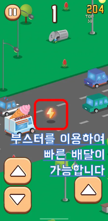Dodge cars up and down, avoid obstacles by jumping, and deliver quickly.