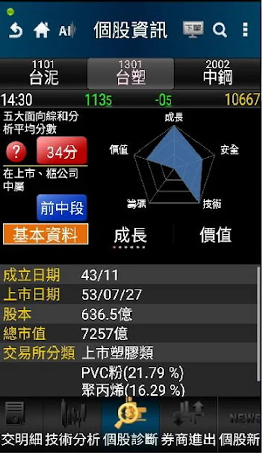 1. 300 stocks of Taiwan stocks self-selected stocks, 15-year-old line chart, 50 technical indicators and other real-time quotes and after-hours information