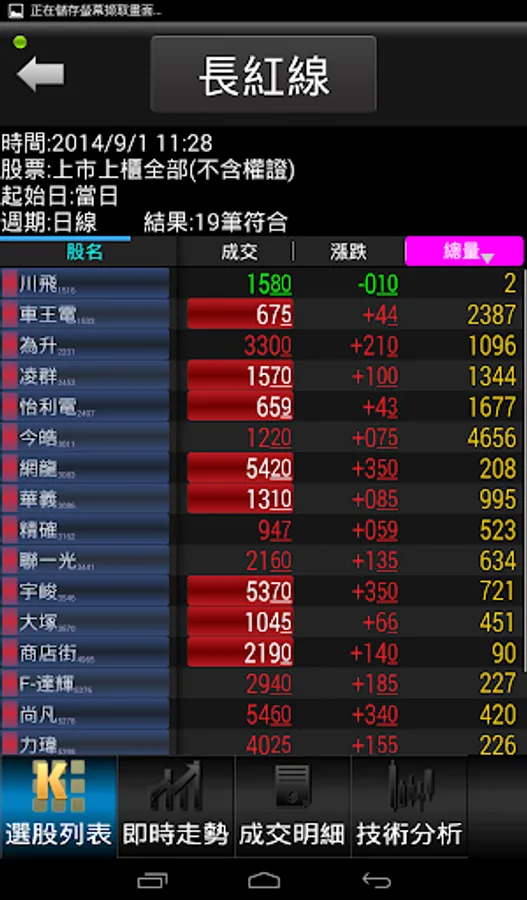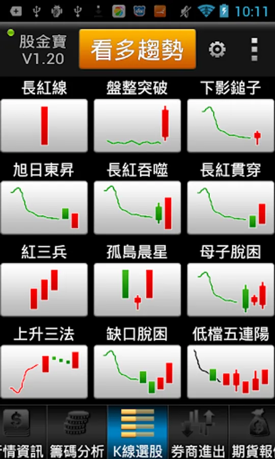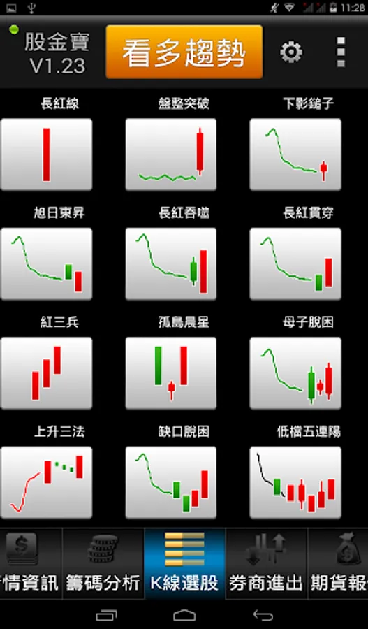 (1) K-line stock selection: Use 24 kinds of graphical click-and-select methods to select stocks intelligently, and you can select stocks according to the graphs, see the long/short trend in real time, and find and track key targets.