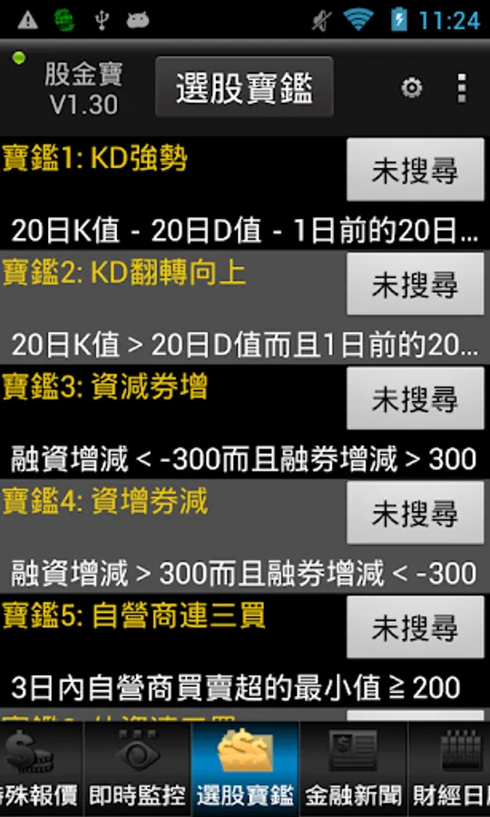 (2) Technical index stock selection: KD flips up, quantitative energy golden cross, strong RSI..., the stock selection treasure ship uses various technical index conditions, with up to 32 sets of stock selection formulas inside the key, and the parameter conditions can be edited to make smaller Select stocks in a precise range, and you can also set your own stock selection formula to quickly and instantly screen out good targets according to your needs.