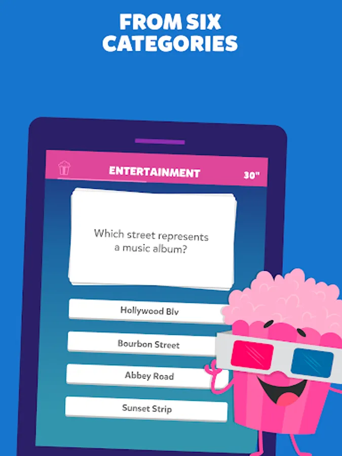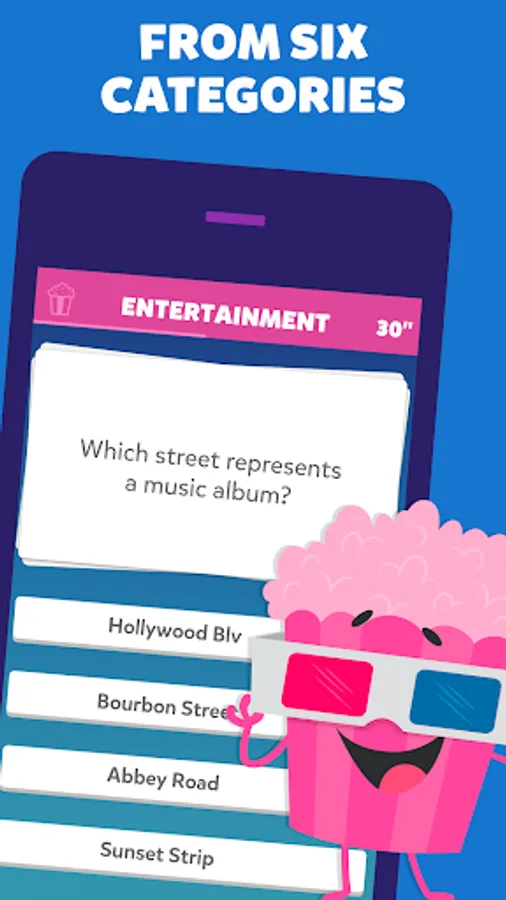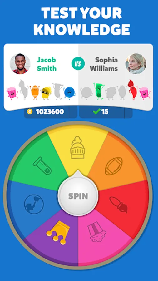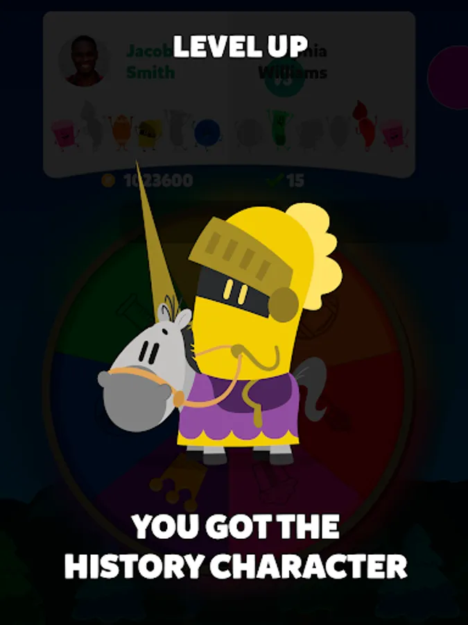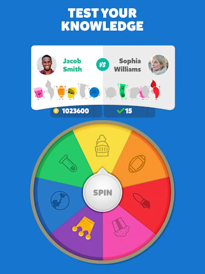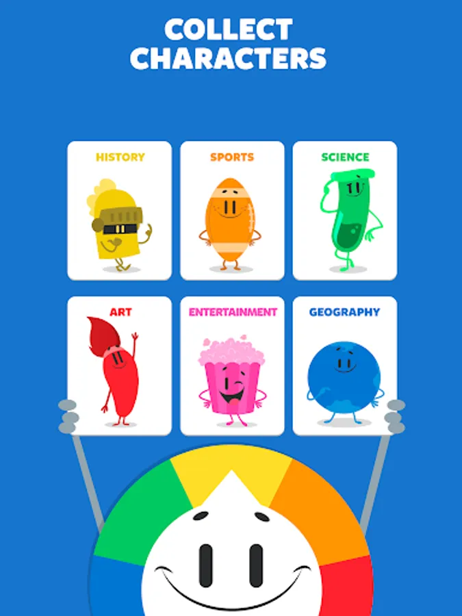 Collect the characters: Win them by answering three trivia questions correctly or challenging your opponent to a duel to snatch one of theirs! Get all six characters to win the trivia match!
