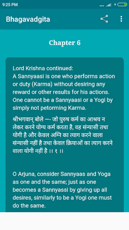 The Bhagavad Gita is best spiritual book. It describes the science of self-realization and the exact process by which a human being can establish their eternal relationship with God. Its knowledge applies to all human beings . The main purpose of the Bhagavad Gita is to illuminate for all of humanity the realization of the true nature of divinity; for the highest spiritual conception and the greatest material perfection is to attain love of God. This Bhagavad Gita app available in both languages hindi and bhagavad gita in english.