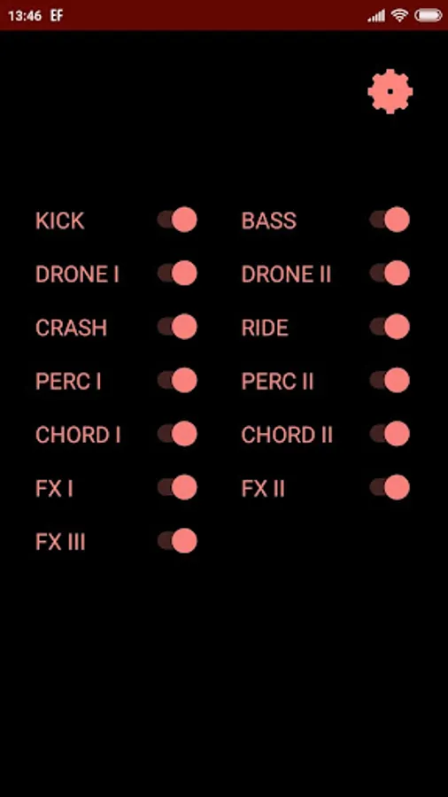 Also it has "mute" feature - tap on gear icon and you can mute chosen instruments and use app as a drone or chords generator, for example.
