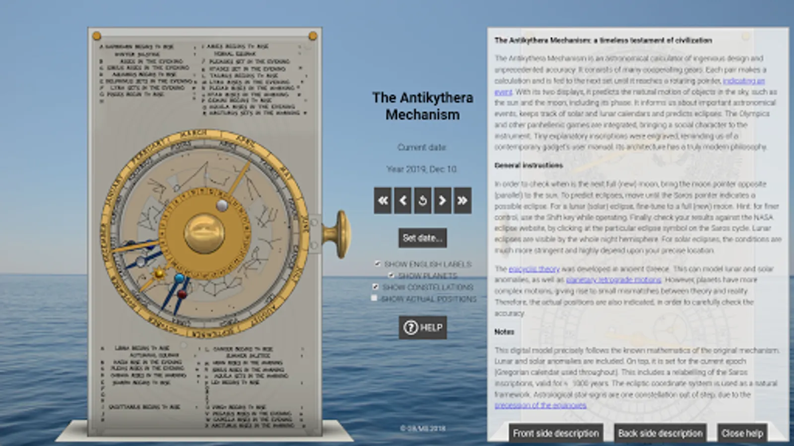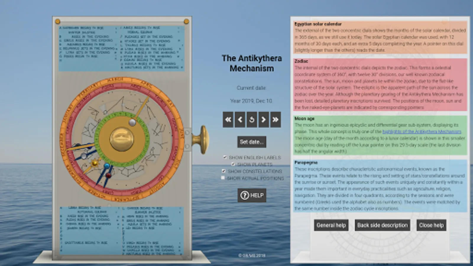 The mind-blowing concepts spread all over the Antikythera Mechanism weren’t spotted in any civilisation for at least one and a half millennia to come. All this know-how seems to have vanished in between. The Antikythera Mechanism constitutes a clever educational gadget, that we admire over time. The app aspires to raise your interest and perhaps enable the younger generation to learn, by exploiting technology with an ancient twist.