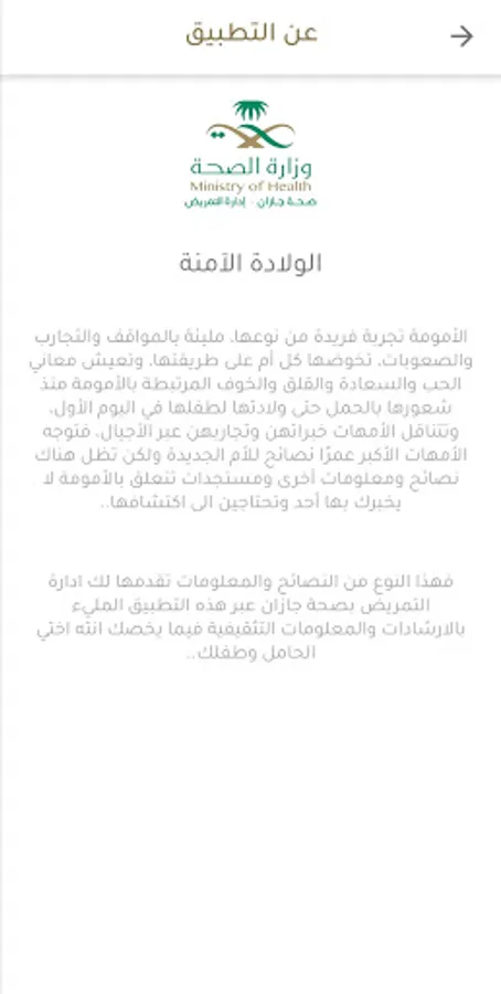My Safe Delivery app is specialized in educating the pregnant mother during her pregnancy through several educational sections. The comprehensive lady’s guide section is concerned with many articles before pregnancy, during pregnancy, before and after childbirth.
