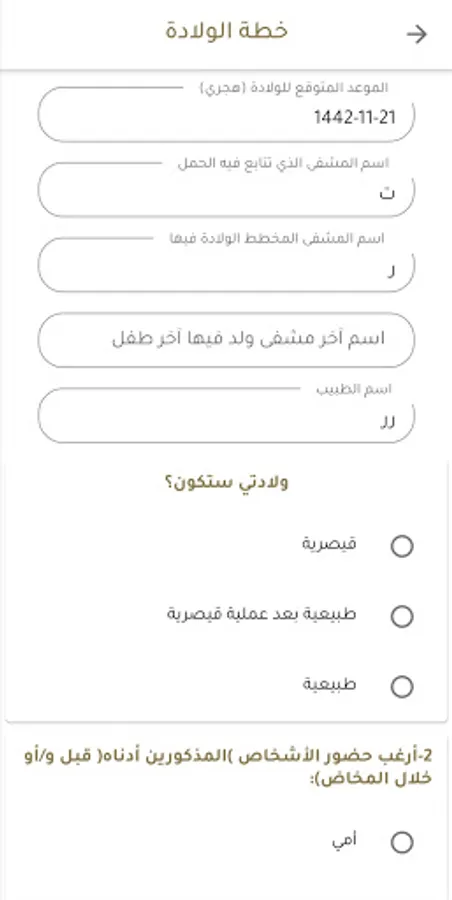 The birth plan section is concerned with the hospital birth questionnaire, which is easy to fill out, save and print.