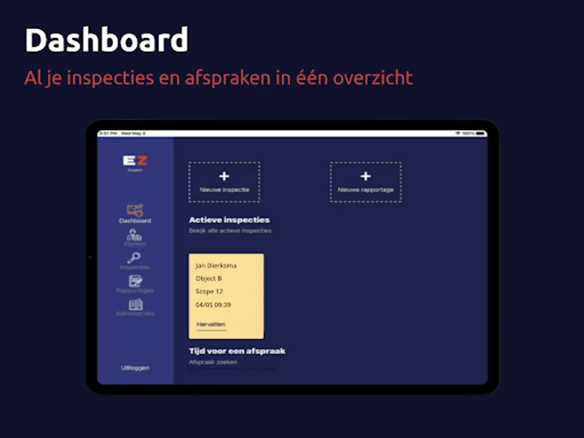 Use our inspection app to easily create inspections. Add your flaws, prepare a report and you're done! EZ inspect is the simplest inspection app. Try now for free!