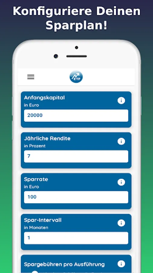 With the free ETF Savings Plan Calculator & Interest Calculator you can easily calculate the development of your ETF Savings Plan. But other investments can be easily calculated!