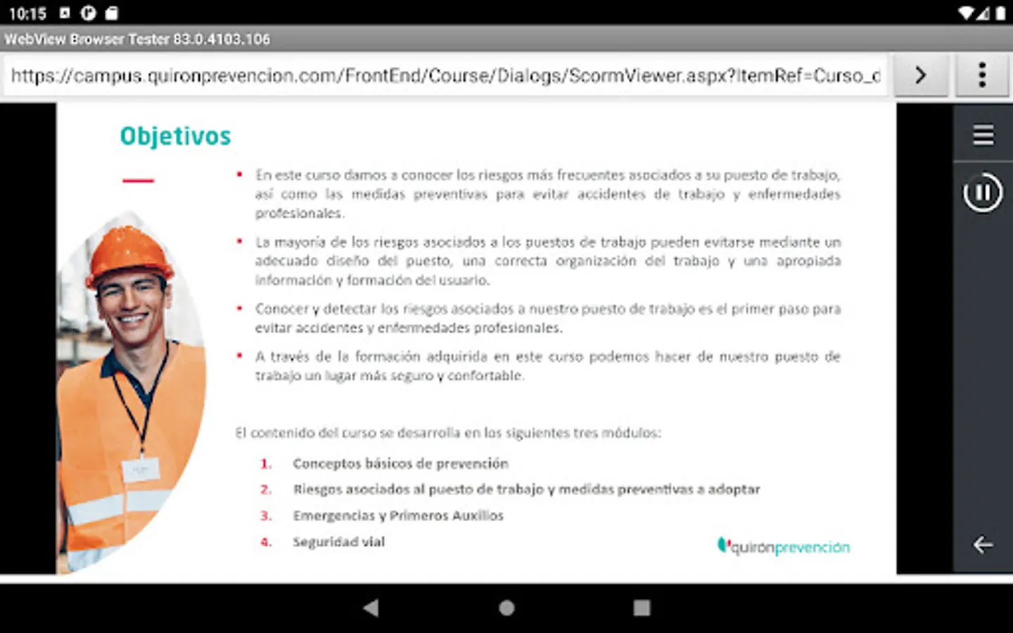 From Quirónprevención we put at your disposal an application that will allow you to carry out the online training of Campus Quirónprevención, on your favorite device (tablet, mobile, etc.).