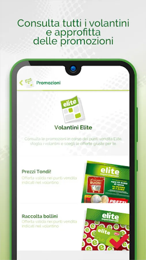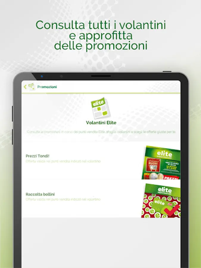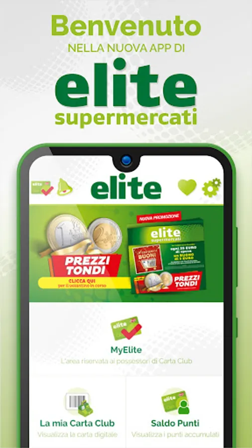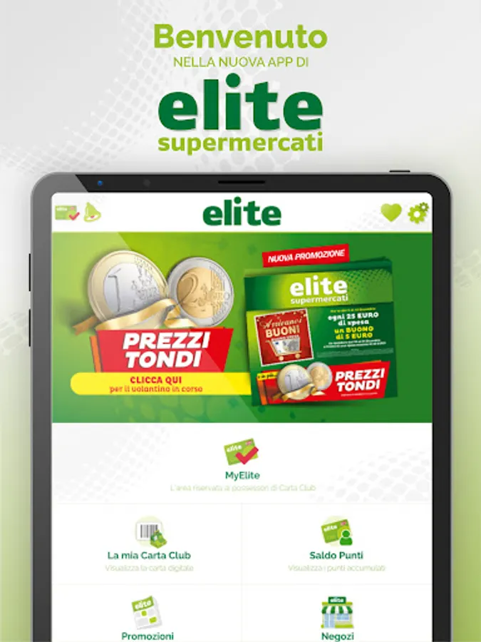 Download the Elite Supermercati App and enter the world of Elite. With this App you will be able to discover the Elite Supermarket stores, find the store closest to you, be updated on promotions and discounts, receive news and useful advice for you and your family, consult always updated recipes.