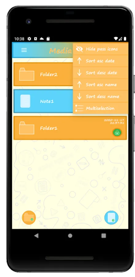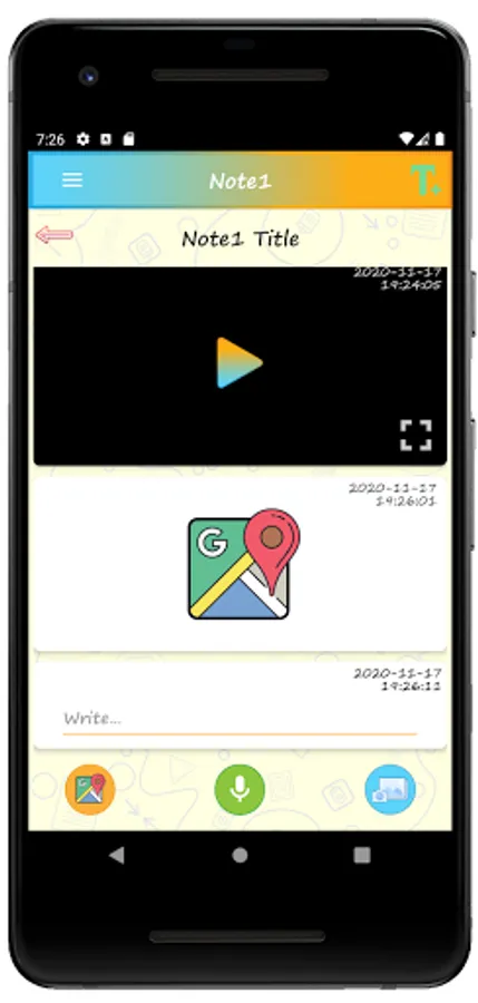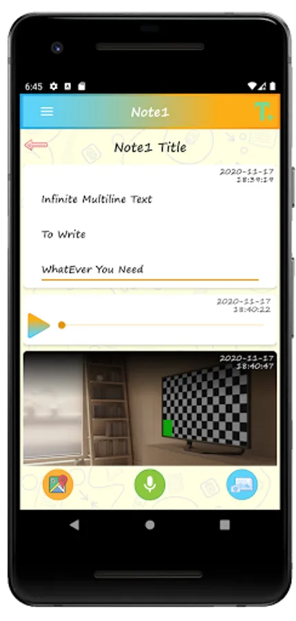 MediaNote is a simple application which using a classic folder organization let you store in a note all the text, voice memos, photos, videos and map locations that you need. All this can be protected from intruders by passwords and fingerprints that can be applied to both folders and notes, whenever you want, fast, easy and secure. You can also post these notes to sell and earn money from advertising or share them with added friends and chat groups.