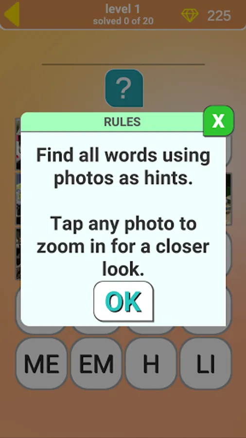In this game you will find 24 levels, each of them with 20 hidden words. Click on the image to enlarge it.