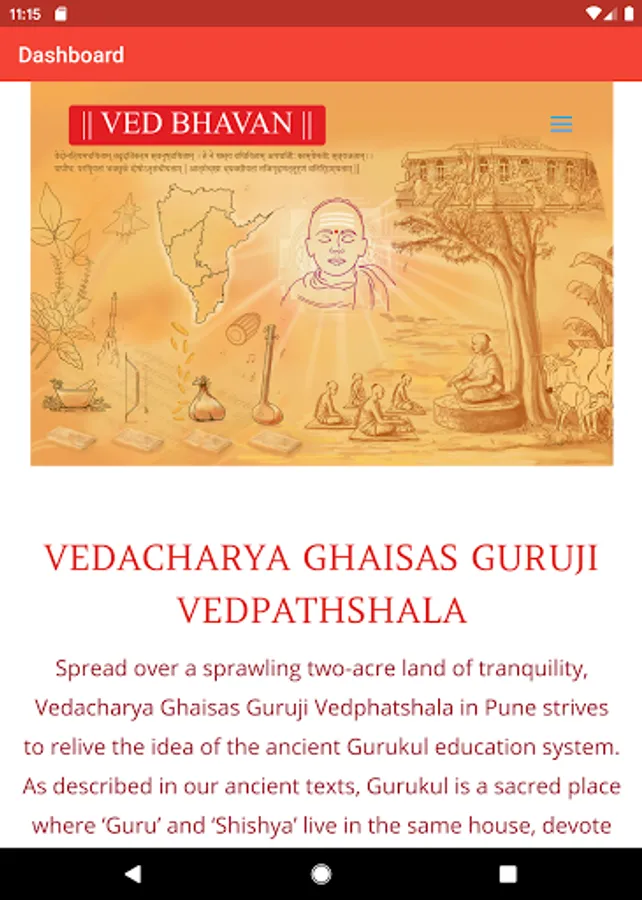 "Vedbhavan Pune" is the offical app of (Vedacharya) Shri Ghaisas Guruji Vedpathshala.