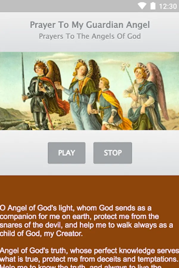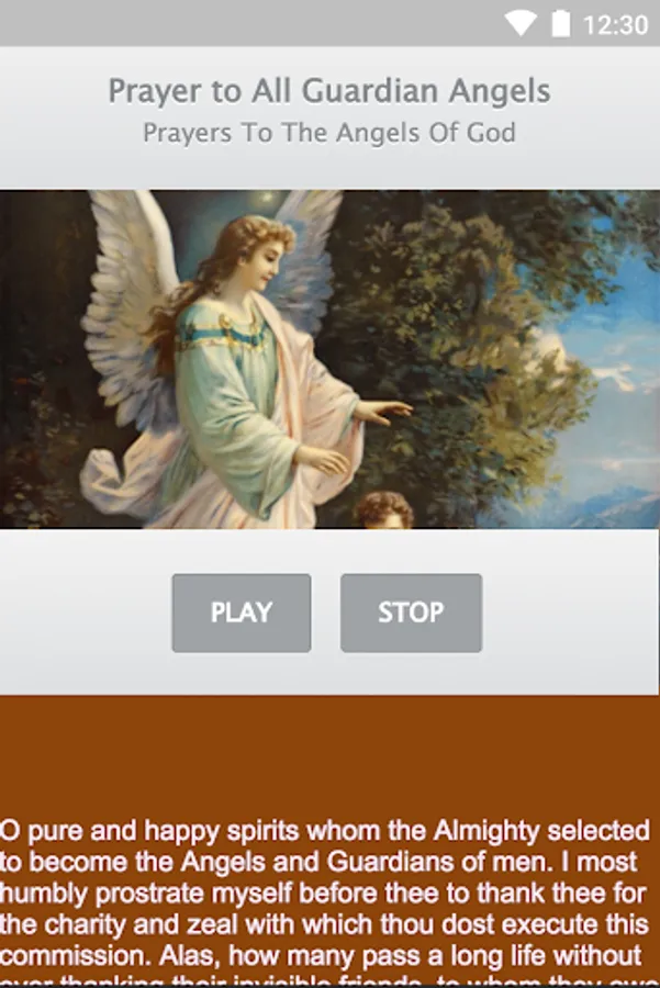 This 'Angel Prayers Audio' app contains 7 powerful prayers to the angels of God. The beauty of this app is you can recite prayer in text or audio.