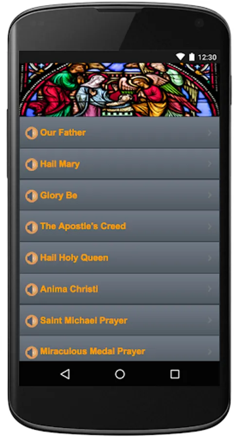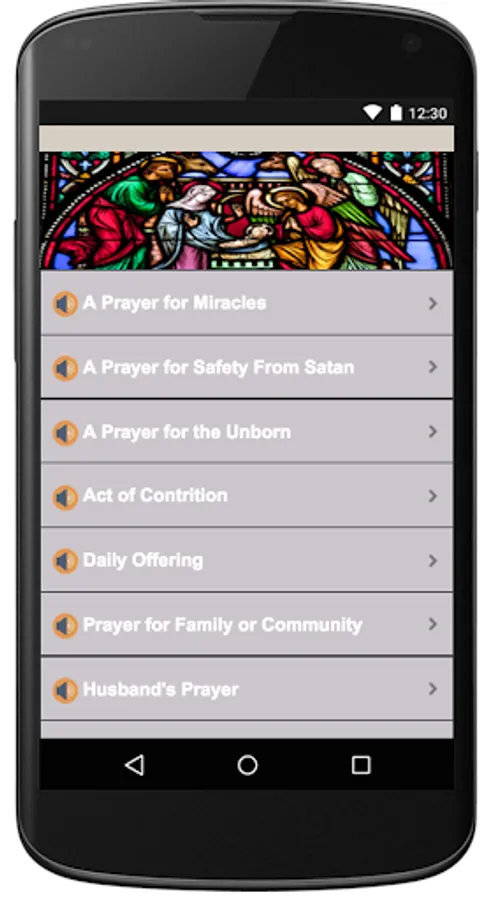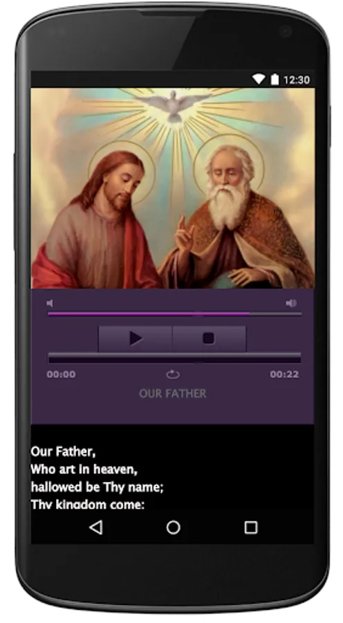 In Catholic Audio Prayer app, simply connect your headphones, click on a prayer, press the audio button and the voice of a man or female will pray with you.