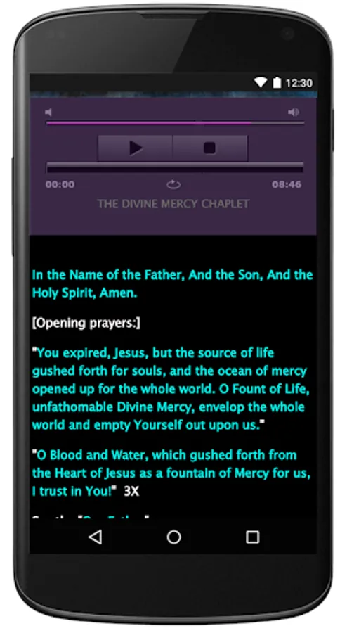 Prayers of divine mercy in audio and text format with customized font style for texts of the prayers.
