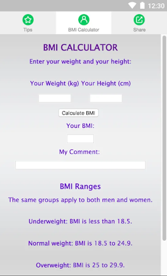 - BMI calculator - know your BMI and start a healthy diet and lifestyle