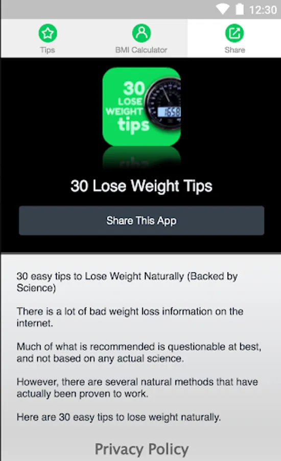 '30 Lose Weight Tips' app is created by