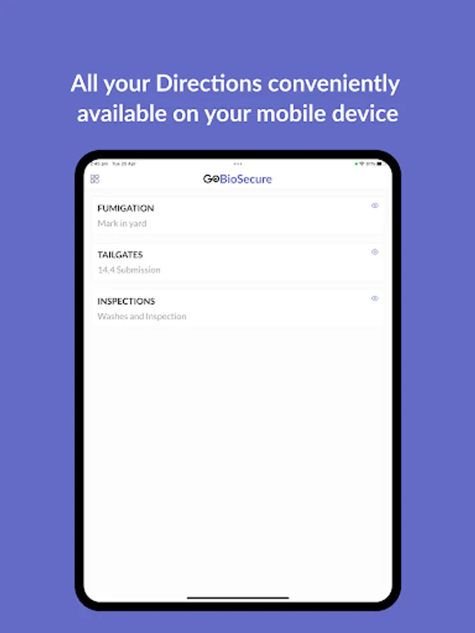 GoBioSecure is an app to manage the processing of Import and Export Biosecurity Directions. The App is used by Port Logistics companies within Australia for efficient and compliant processing of Directions with Direct Integration to DAFF (The Department of Agriculture, Fisheries and Forestry).