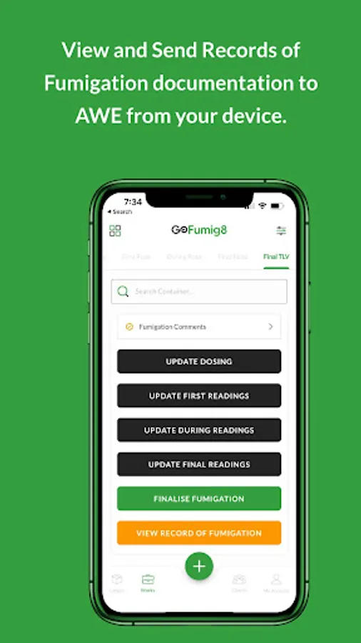 GoFumig8 is a mobile and desktop app that allows Fumigators to easily collect Fumigation data from the field in an Easy and Compliant manner. We have worked with the Australian Government and the Fumigation Industry to build a suite of solutions that add value to many touch points of the Fumigation Industry and the Biosecurity space. The App accommodates for Importing, Exporting and General Farm Fumigations. Features include: Forecast API, Auto Calculation of Dosing and Target Readings. Live Creation of Fumigation Certificates and Records of Fumigations from the field. The App also includes easy data entry with voice to text, easy invoicing and gas usage monitoring.
