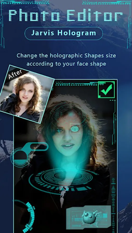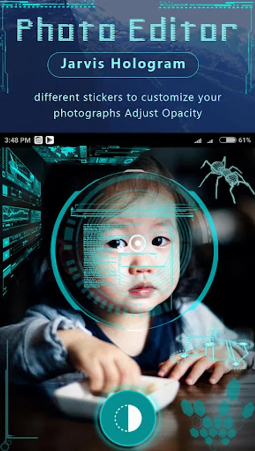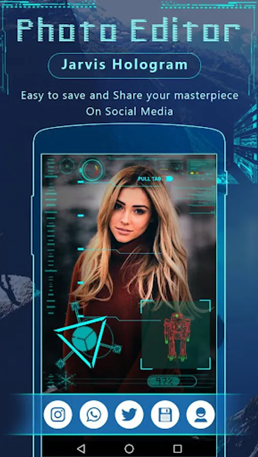 Jarvis Effect Photo Editor application is photo editor app. you can edit your pic in jarvis look.