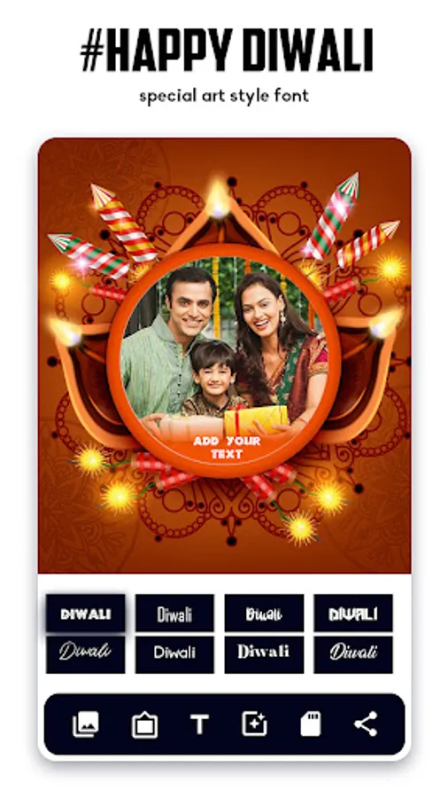 After by with adorning your picture save the Diwali photo frame to your gallery or share it through social networks.