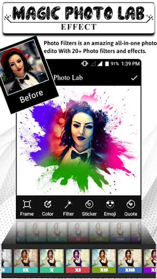 Photo Lab is a creative tool that lets you turn ordinary photos into masterpieces. Perfect for your phone and tablet!