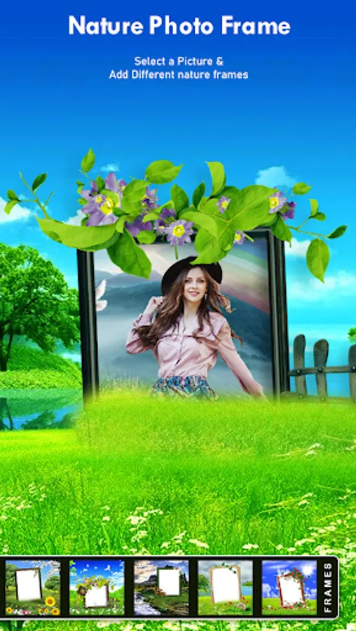 ⇝ Select a picture or a selfie from the gallery and use this Nature Photo frame