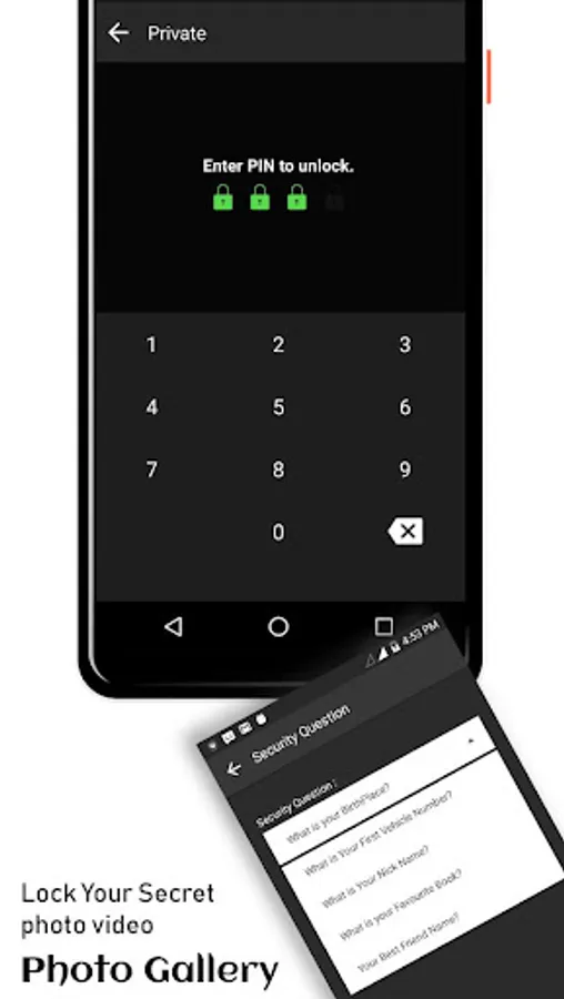 ↦ Hide your photos – videos in private vault in your privacy security like pattern and pin.