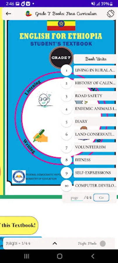 The app contains e-books of grade 7 students. The e-books are based on the new education curriculum of Ethiopia.