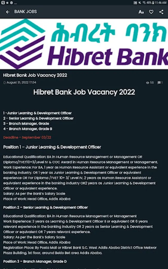 Overall, our app is the perfect solution for job seekers in Ethiopia. It streamlines the job search process and increases your chances of finding suitable employment. So why waste your time scrolling through endless job boards when you can have everything you need in one convenient app? Try our app today and take your first step toward a successful career.