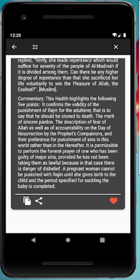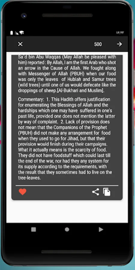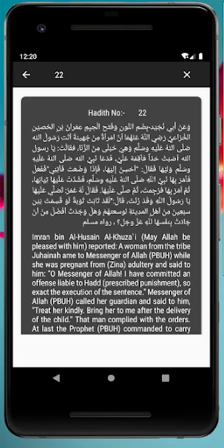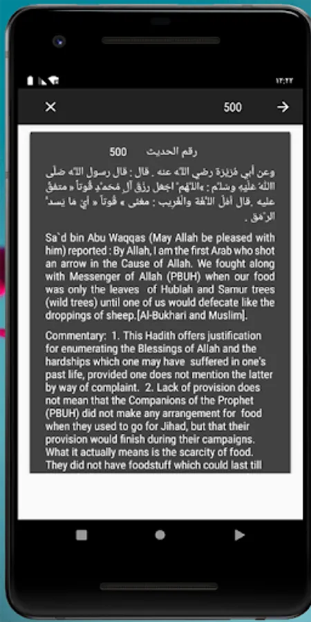 In this application we have introduced hadith commentaries for better clarification and also included Arabic hadith.