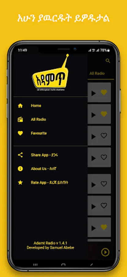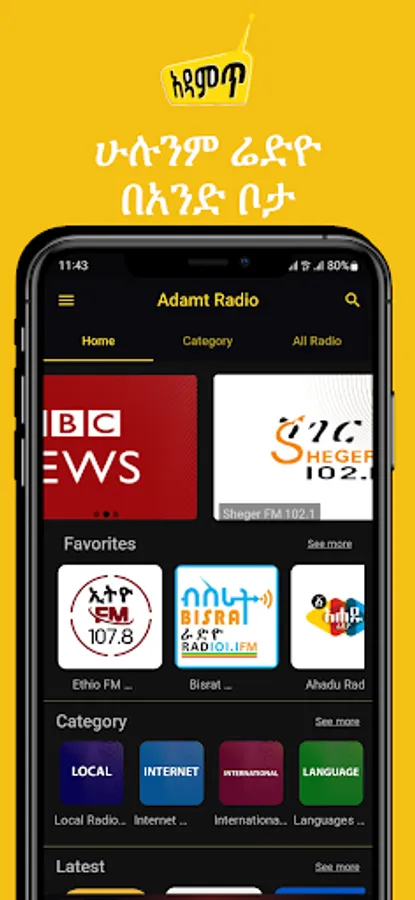 Adamt Radio is the best app for listening to all Radio programs. You can find all stations broadcasting in Ethiopia and worldwide. including Live & All local AM and FM radio stations.