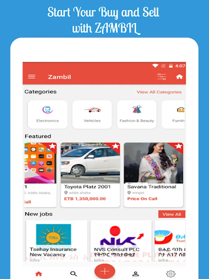 Zambil is the perfect online marketplace to buy and sell locally in Ethiopia! No need to visit the flea market to find the best deals on pre-owned items! Here you’ll find a wide selection of like new products, from vintage clothes, antique furniture, used mobile, and tv, to electronics, pre-owned cars and studios for rent!