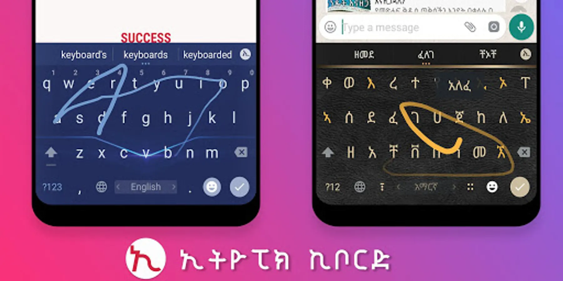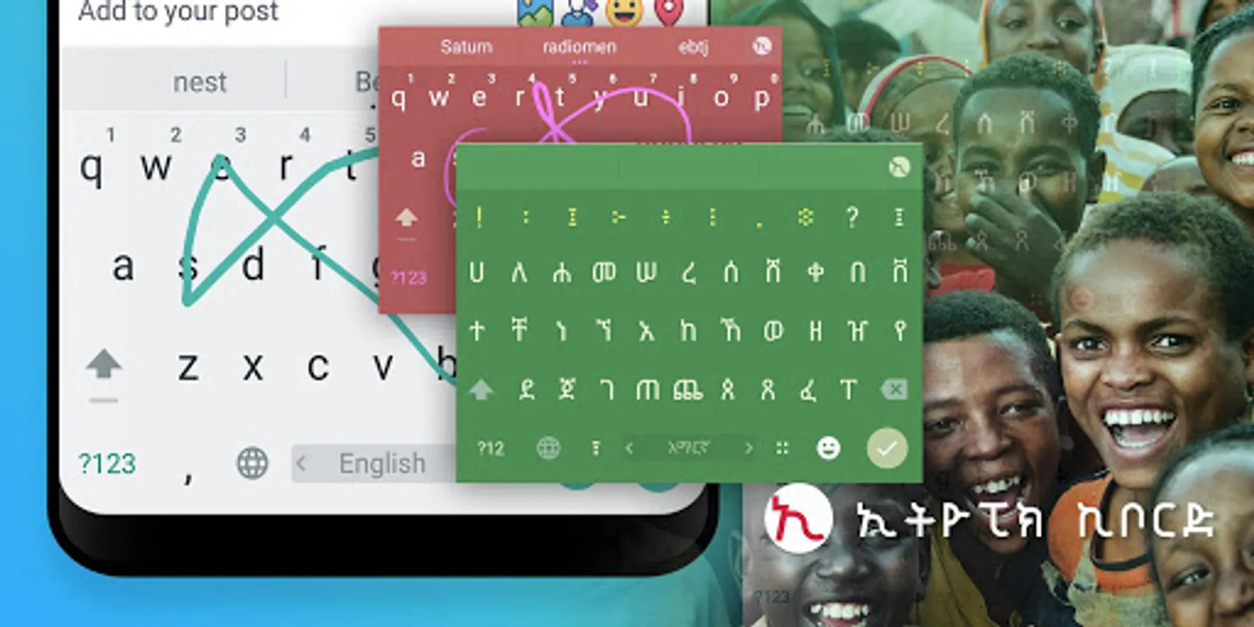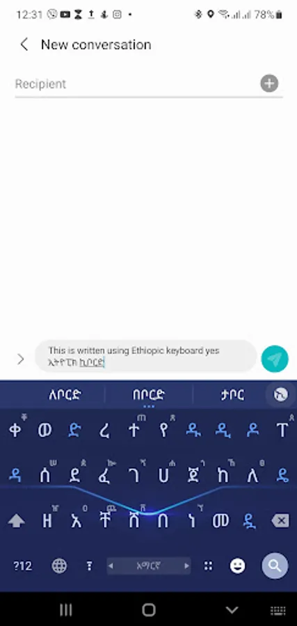 - Multi - language keyboard supporting Amharic, Tigrinya and Afaan Oromoo, Arabic languages