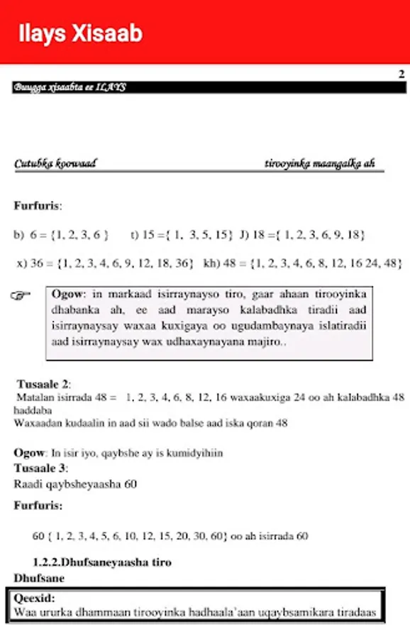 Buuga Ilays Xisaab si uu uhormaro una gaadho arday badan oo ubaahan kaliya ku taageer in aad ku qiimayso shan xidigood adiga oo tilmaanta raacaya. Ilays Xisaab waa buugaada. ilays xisaab waa buugeena, ka qayb qaado in aan si wada jir ah udhisno mustaqbalka carruurteena. Ilays Xisaab waa furaha maadada xisaabta haddii aad arday tahay ama haddii aad macalin tahayba.