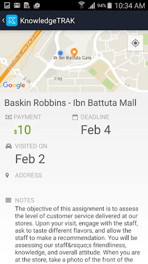 2. Once you accept an assignment that you are interested in, you can accept it and follow the instructions that will guide you throughout. You may be asked to take a picture and/or answer a few questions about your experience.