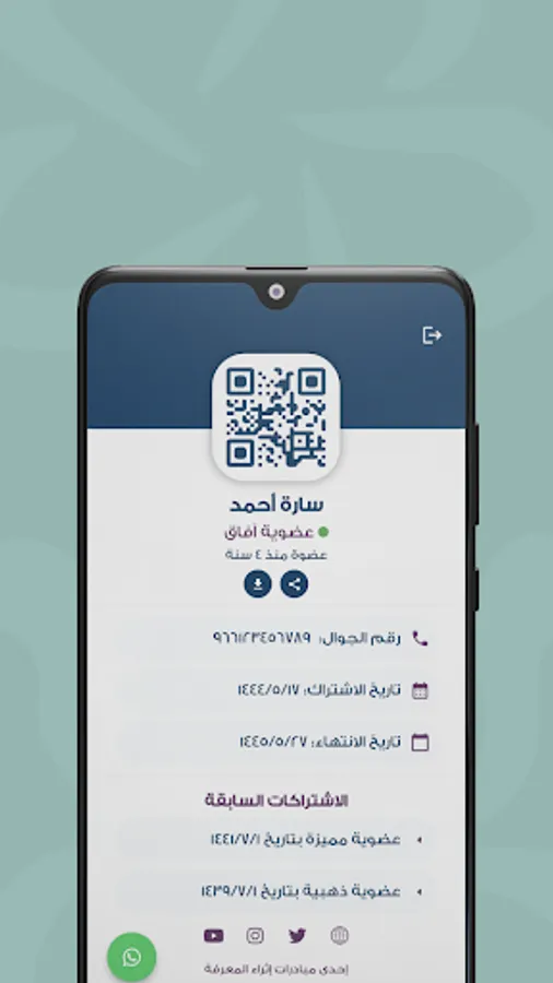 An application for knowledge enrichment members. They can view the membership card, current membership data, and previous subscriptions.