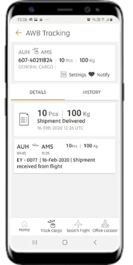 The Etihad Cargo Mobile App has been developed with ease of use at the forefront of the experience, with key functionality to allow our business customers to access their shipment information anytime.