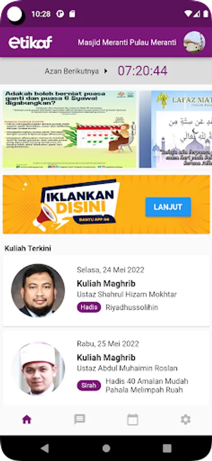 Aktiviti dan informasi dari masjid, dapat diakses dengan mudah oleh jemaah melalui app ini.