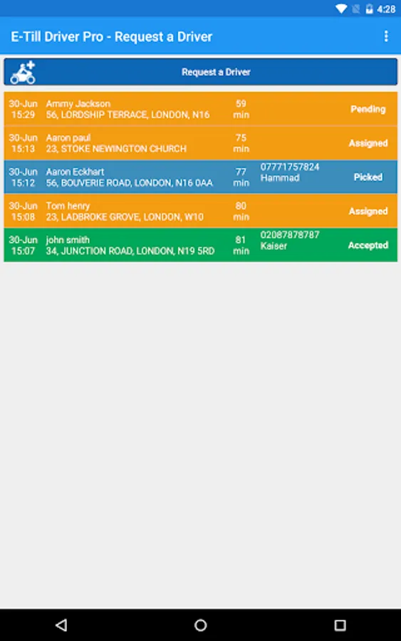 E-Till Driver Request is the smartest and easiest way to Request a Driver when ever you needed to deliver your food or goods to your customer on time. Either you are a restaurant or a fast food takeaway or a grocery store or a pharmacy, this app can save you the cost of keeping a driver all the time. Just open the app send your Driver Request and in next few minutes a driver will be on your door steps to pick up the order and to deliver it.